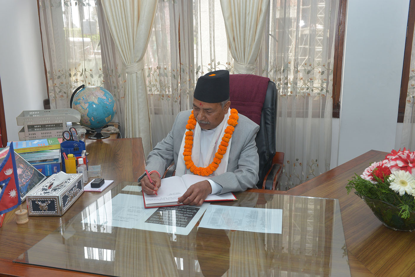 पदभार ग्रहण गर्नुहुँदै सम्माननीय उपराष्ट्रपति श्री रामसहाय प्रसाद यादवज्यू (२०७९ चैत्र ०६)