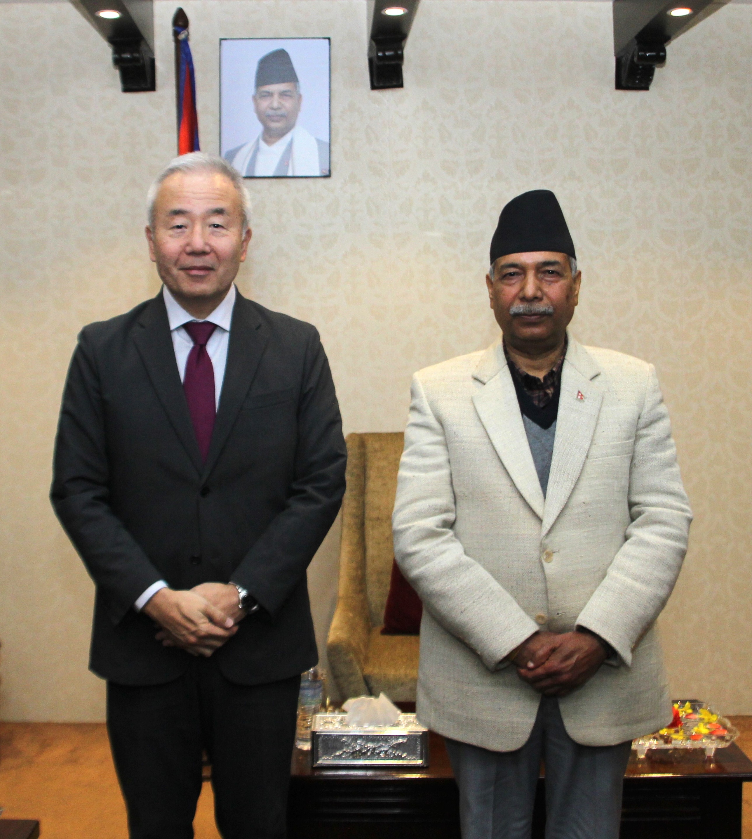 सम्माननीय उपराष्ट्रपतिज्यूसंग जापानका महामहिम राजदूत H.E. Mr. MAEDA Toru को शिष्टाचार भेट मिति २०८२।१०।२६
