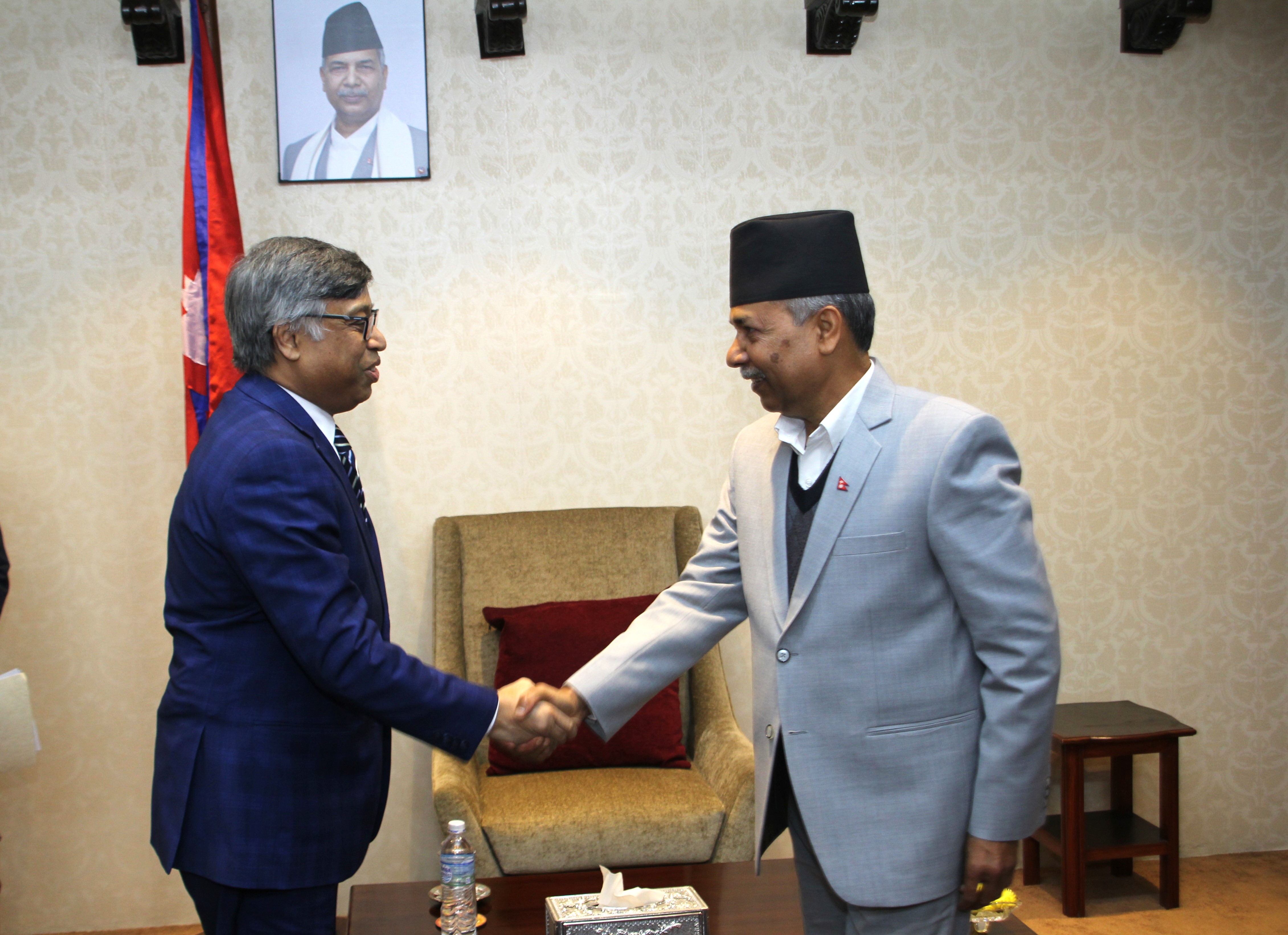 सम्माननीय उपराष्ट्रपतिज्यूसंग दक्षिण एशियाली क्षेत्रीय सहयोग सङ्गठन (सार्क) का महामहिम महासचिव H.E. Mr. Golam Sarwar को शिष्टाचार भेट मिति २०८२।०८।१९