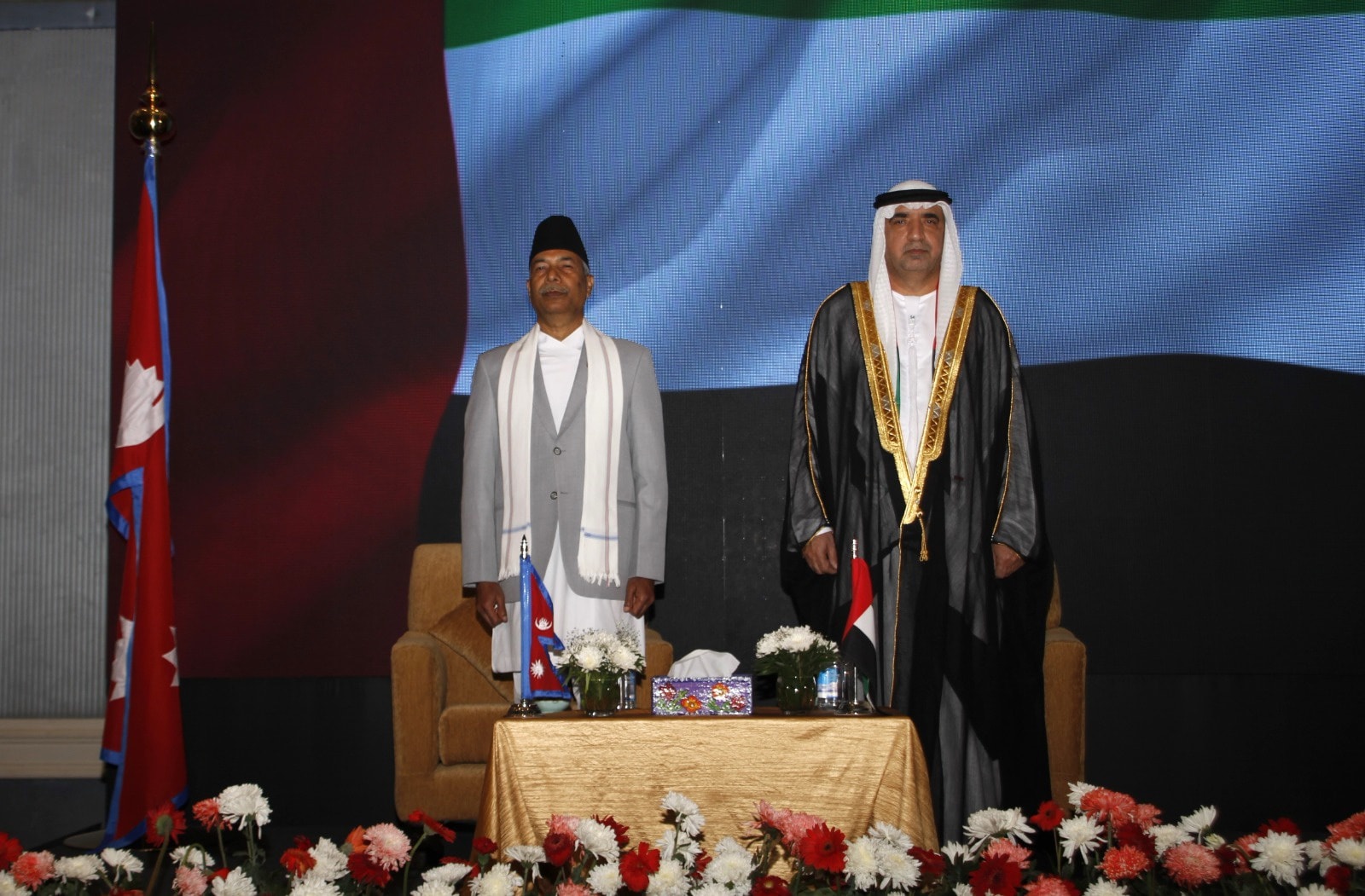 सम्माननीय उपराष्ट्रपति श्री रामसहाय प्रसाद यादवज्यू २०८२ मंसिर १३ गते शनिबार काठमाडौंस्थित संयुक्त अरब इमिरेट्स (यूएई) दूतावासद्वारा आयोजित यूएईको राष्ट्रिय दिवस समारोहमा सहभागी हुनुहुँदै ।